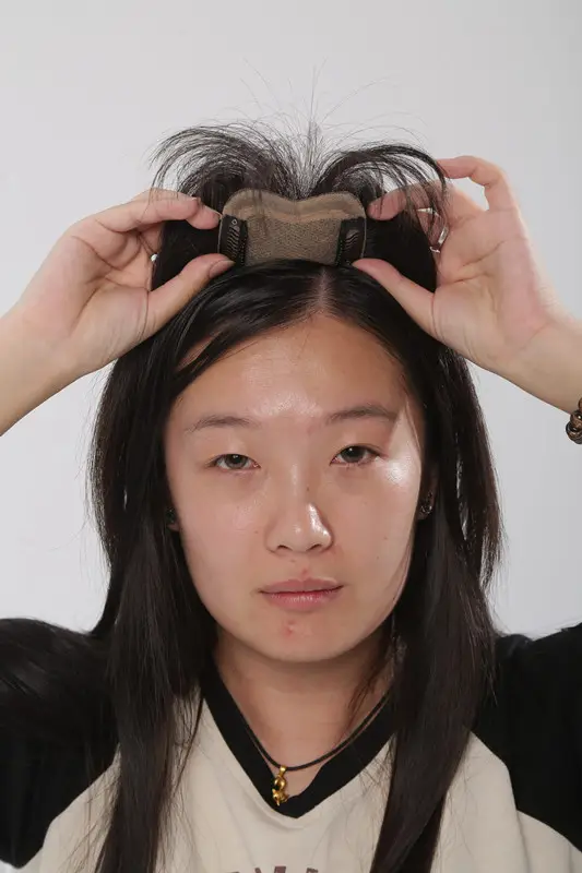Start by deciding where your mini hair topper will sit. For most people, it’s around the crown of the head, where you want the most volume.
